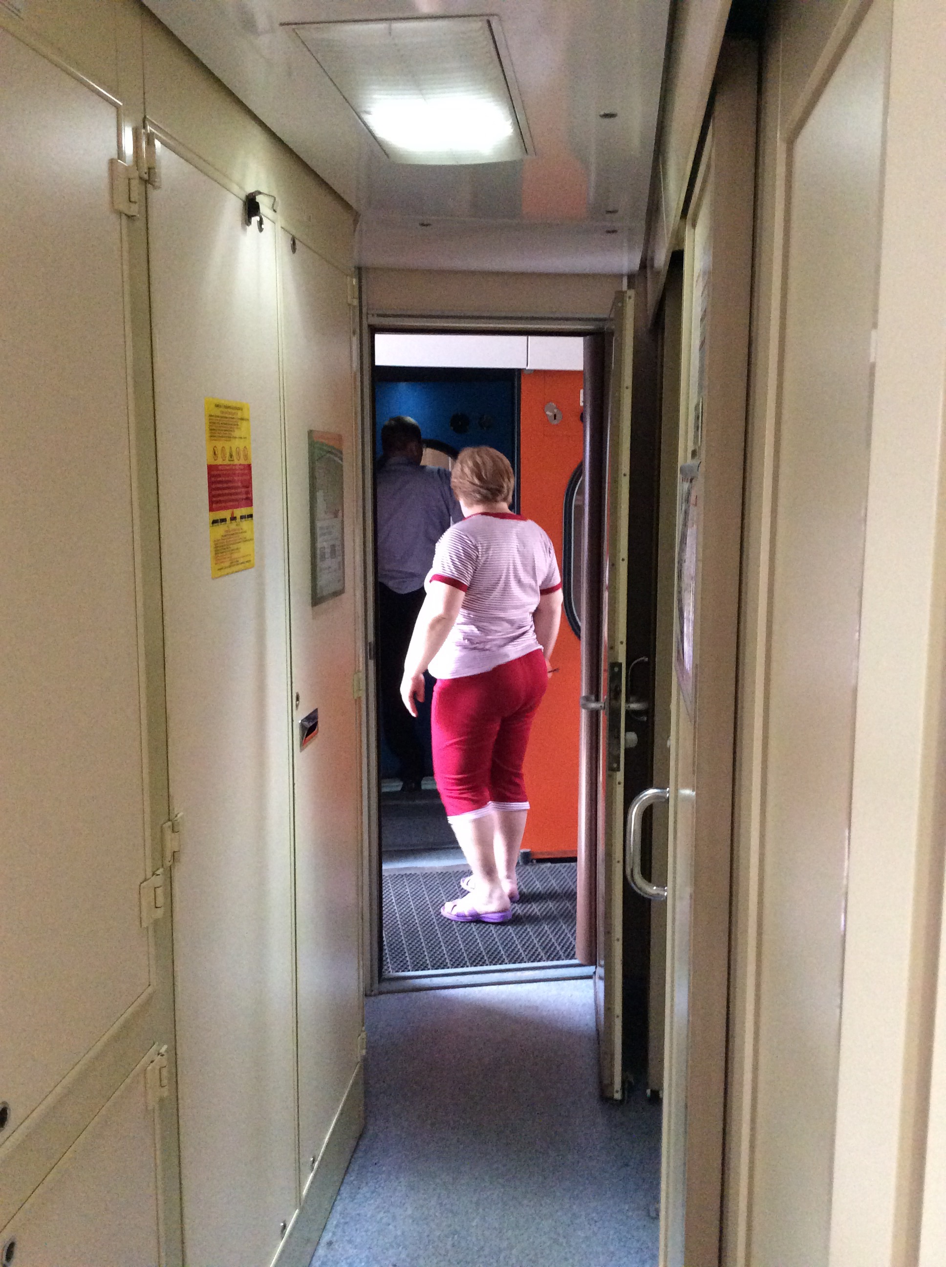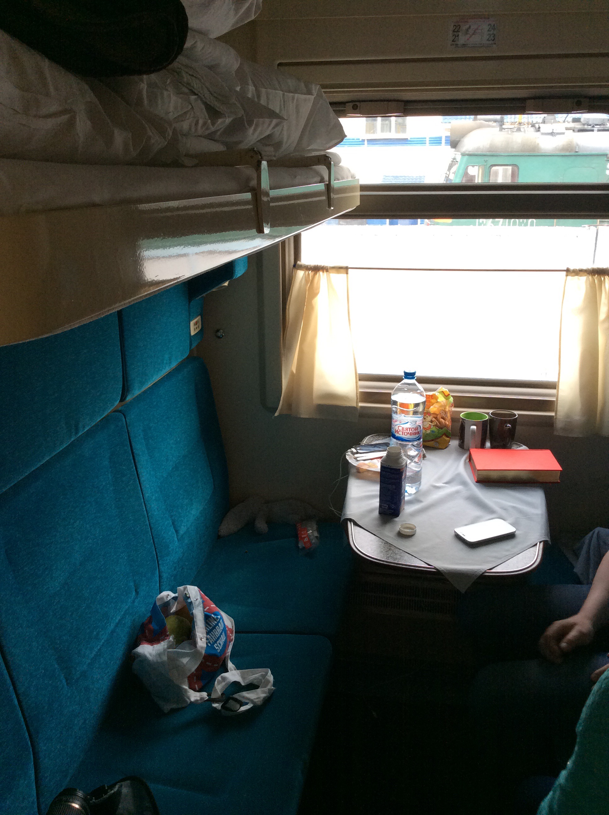 Being told off: First interaction with the friendly conductor ladies was getting told off in Russian. I took me less than 15 min. For simplicity purpose I will call them Olga and Ludmilla. Olga has dark hair, 70style make up, solid body, is determined in her actions and resourceful with her smile. She is also in charge of the coffee and tea supply, therefore an important person to be in good terms with. Ludmilla is blond, carries her heart in her face, has the most innocent and touching smile, is super helpful and wants to ensure I have enough to eat, which seems to be an important part in her life. Olga told me off 😦 I took the “wrong” bed. Well actually I did it on purpose to ensure to have a safety zone to snooz away while traveling.