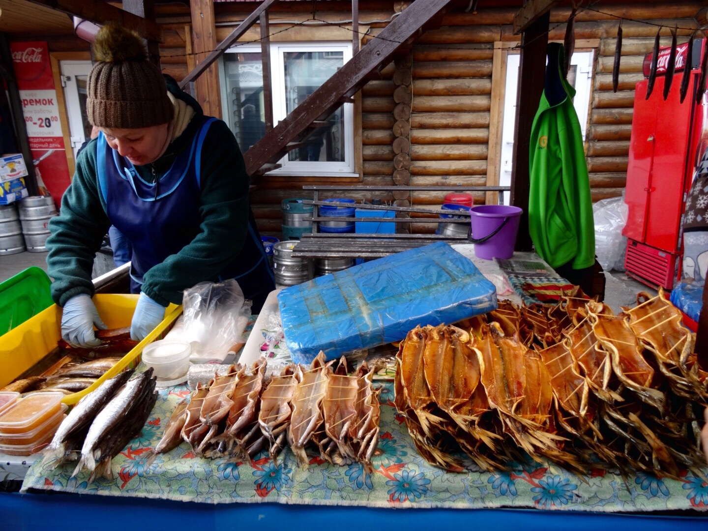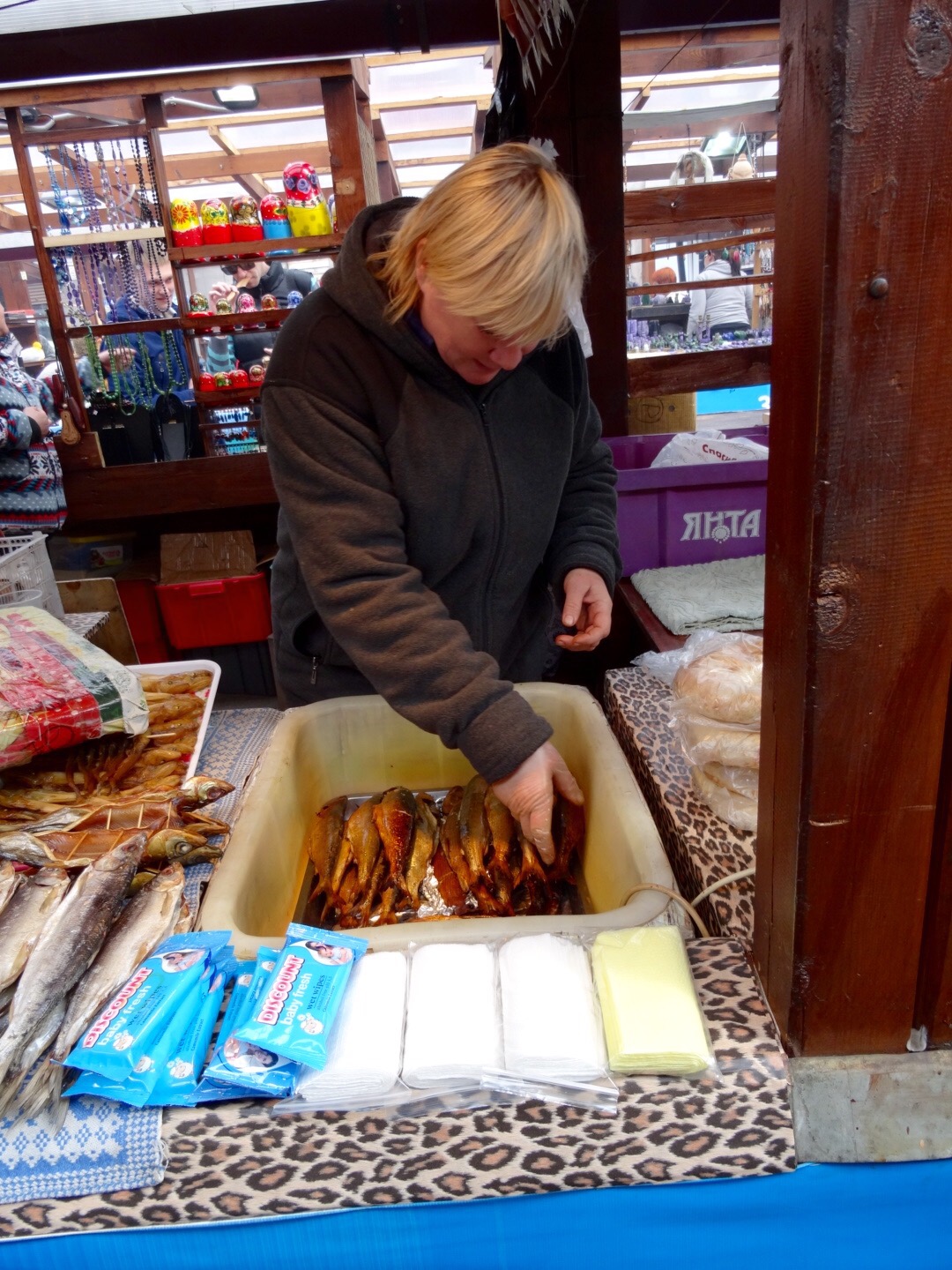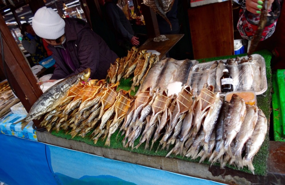 general Village Market / afternoon – tasty fish Posted by BB on 3. May 201510. April 2016 Small sitze fish on the market = 100 Russian Rubel = approx. 1,59 € I postcard = 10 Rubel Lunch in the train: (2 tea, 1 coffee, maincourse fish and an extra salat) = 1.800 Rubel ….. No wonder the restaurant was fairly empty… Teilen mit: facebook Click to share on X (Opens in new window) X More Click to share on LinkedIn (Opens in new window) LinkedIn Click to share on WhatsApp (Opens in new window) WhatsApp Click to share on Facebook (Opens in new window) Facebook Click to share on Tumblr (Opens in new window) Tumblr Like Loading...