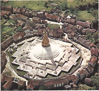 By the time I arrived at the happiness guesthouse which is very close to (http://happinessguesthouse.com) the Boudha Stupa everything was closed already. I quickly went to a supermarket and on my way back I could see two women praying “around” the Stupa. Standing, going down on their knees, laying on the ground, stretching their hands and praying, putting down a stone where the fingers touched the ground, getting up again, walkimg to the place they placed the stone to do the same all over again.