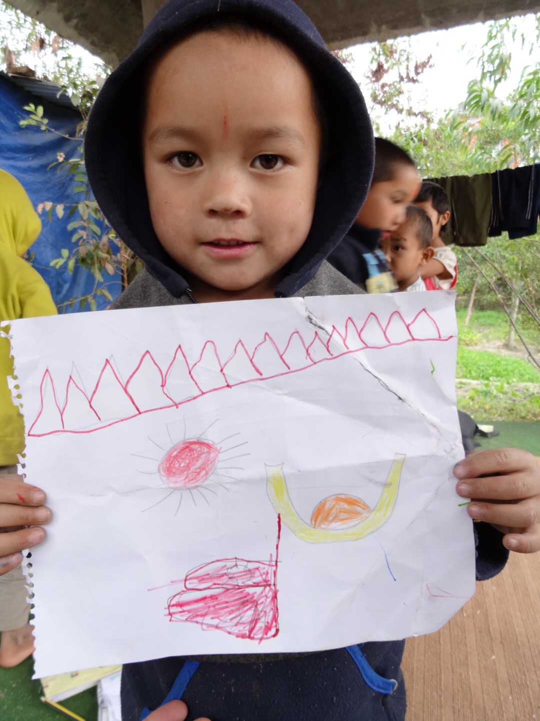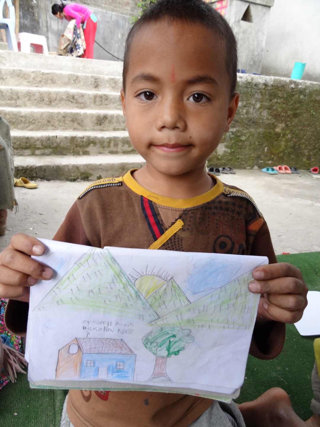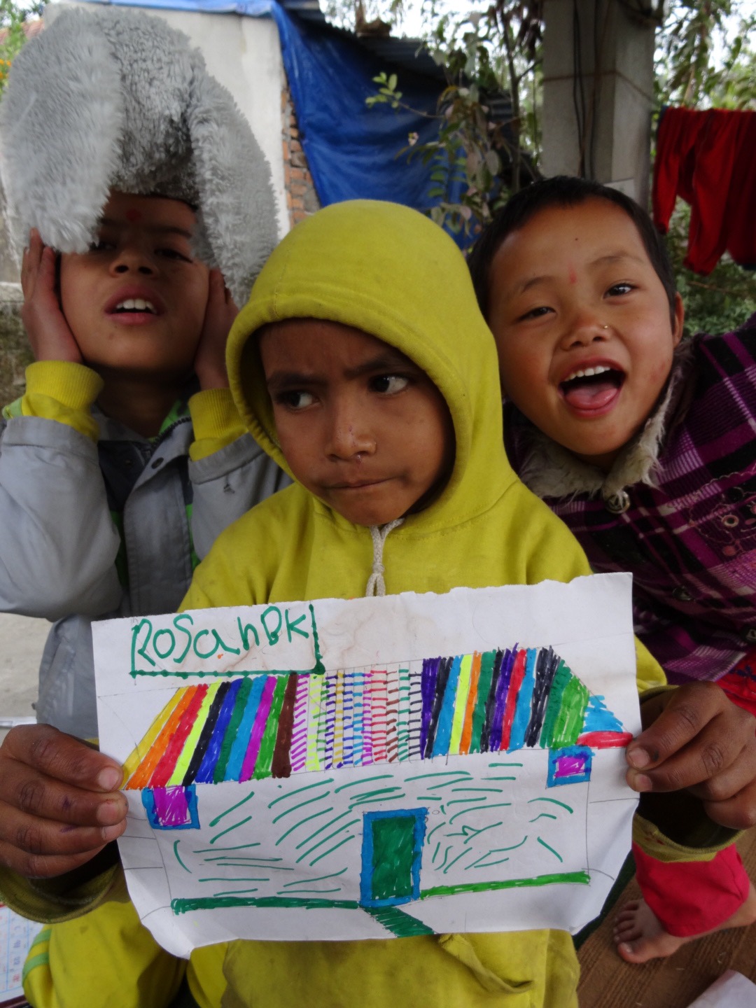“Let’s draw.” “Oh yes, but what sister?” ” How about your new home, you or just simply happy faces?”