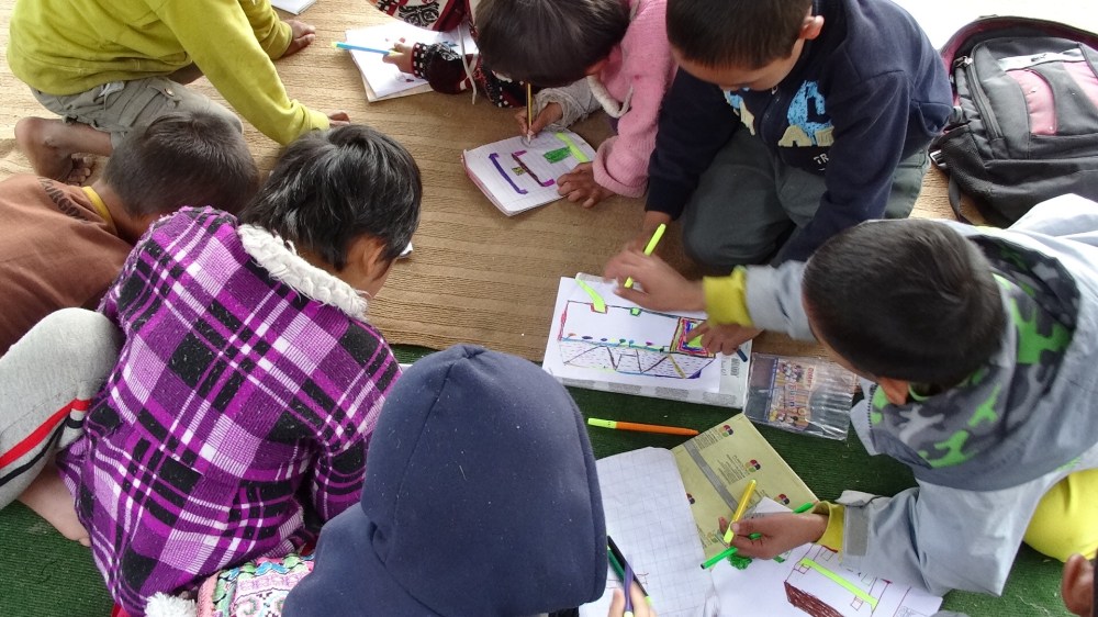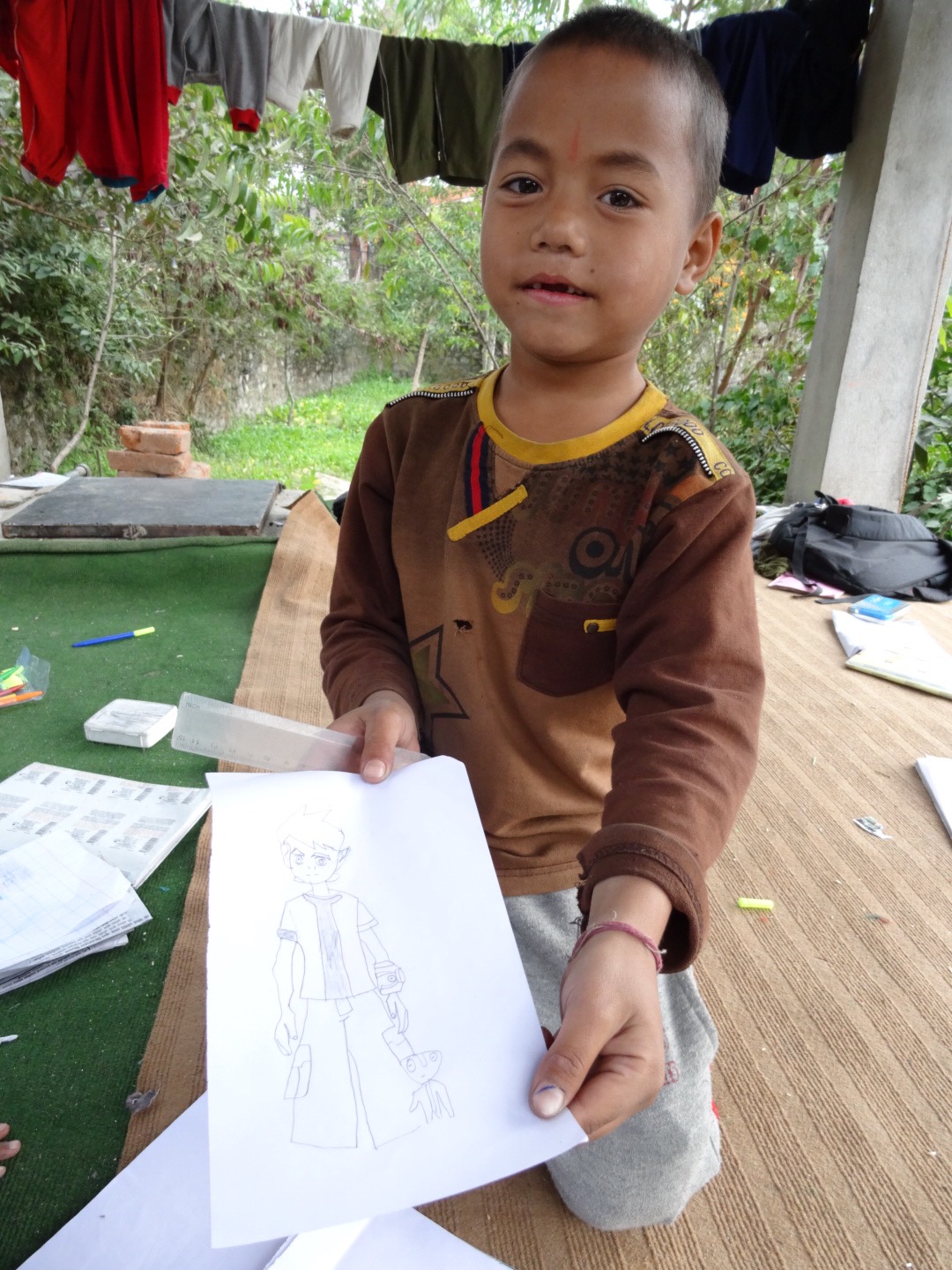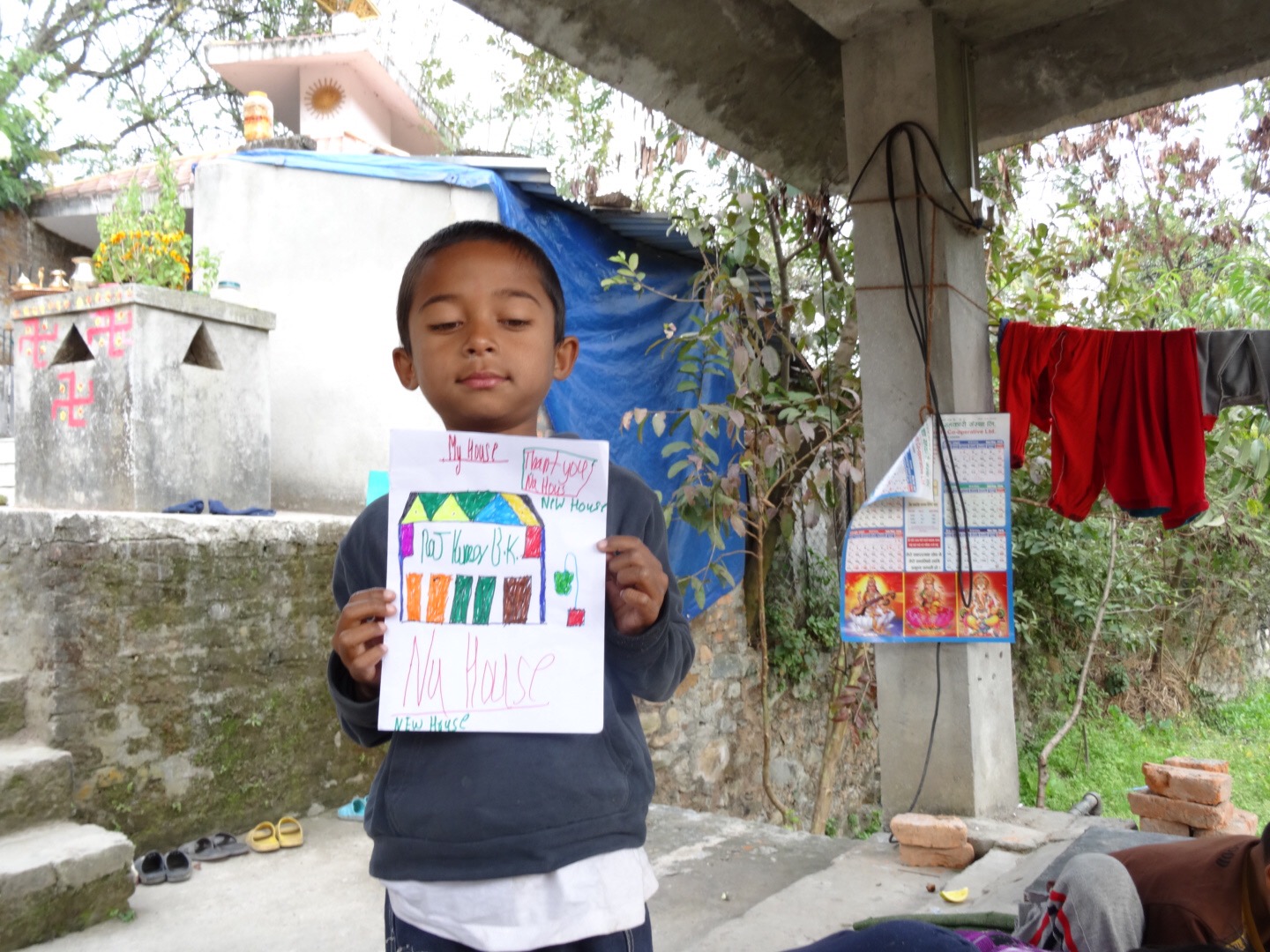 “Let’s draw.” “Oh yes, but what sister?” ” How about your new home, you or just simply happy faces?”