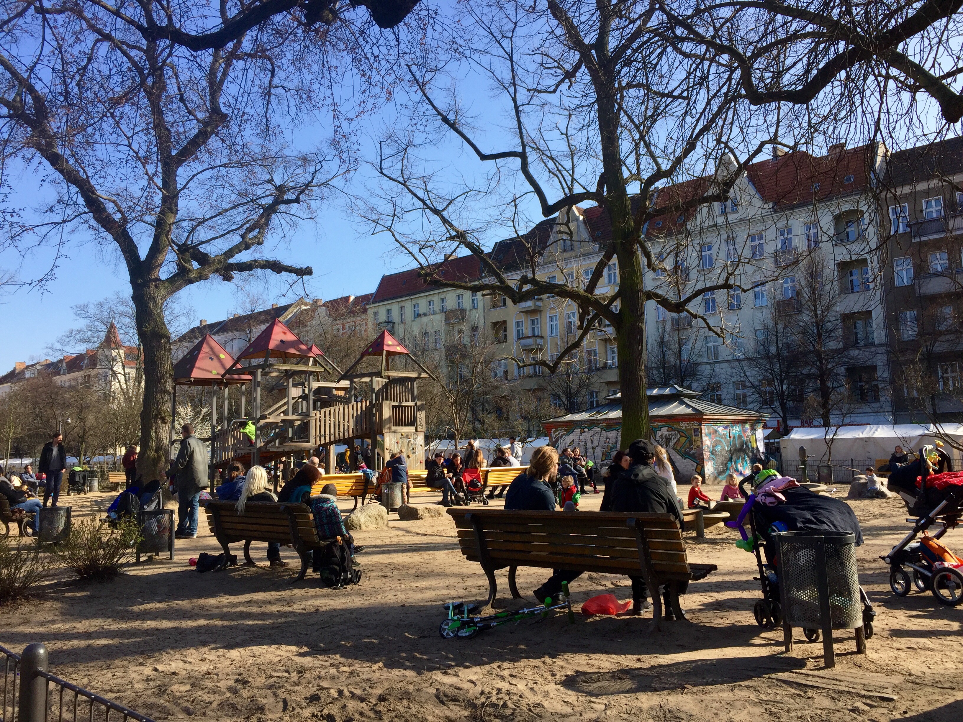 It’s nice to see how much people enjoy first sunbeams. Even the water in the playground was operating already. In this post I take you for a little stroll around my neighborhood…
