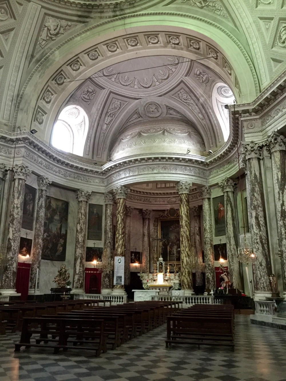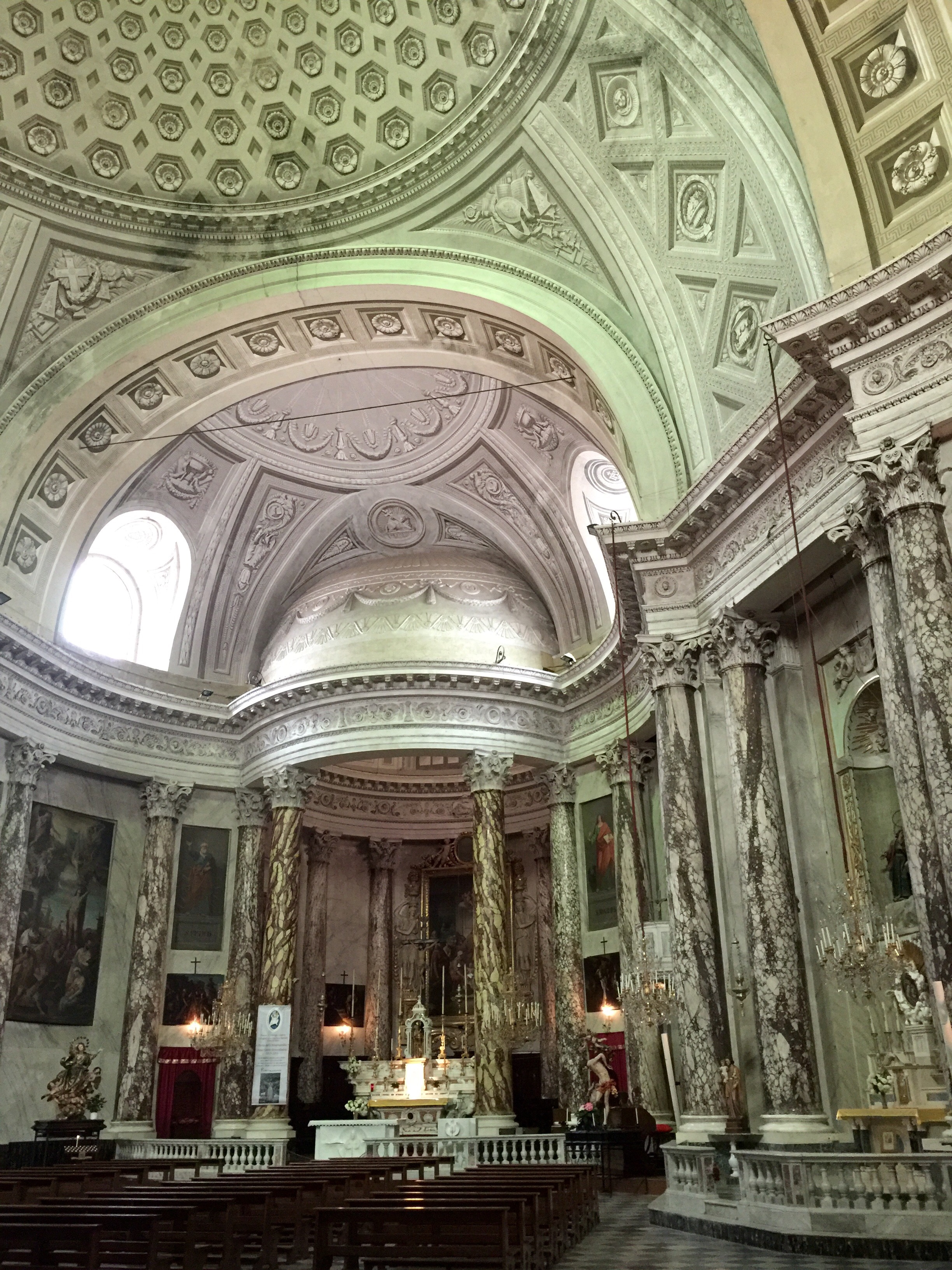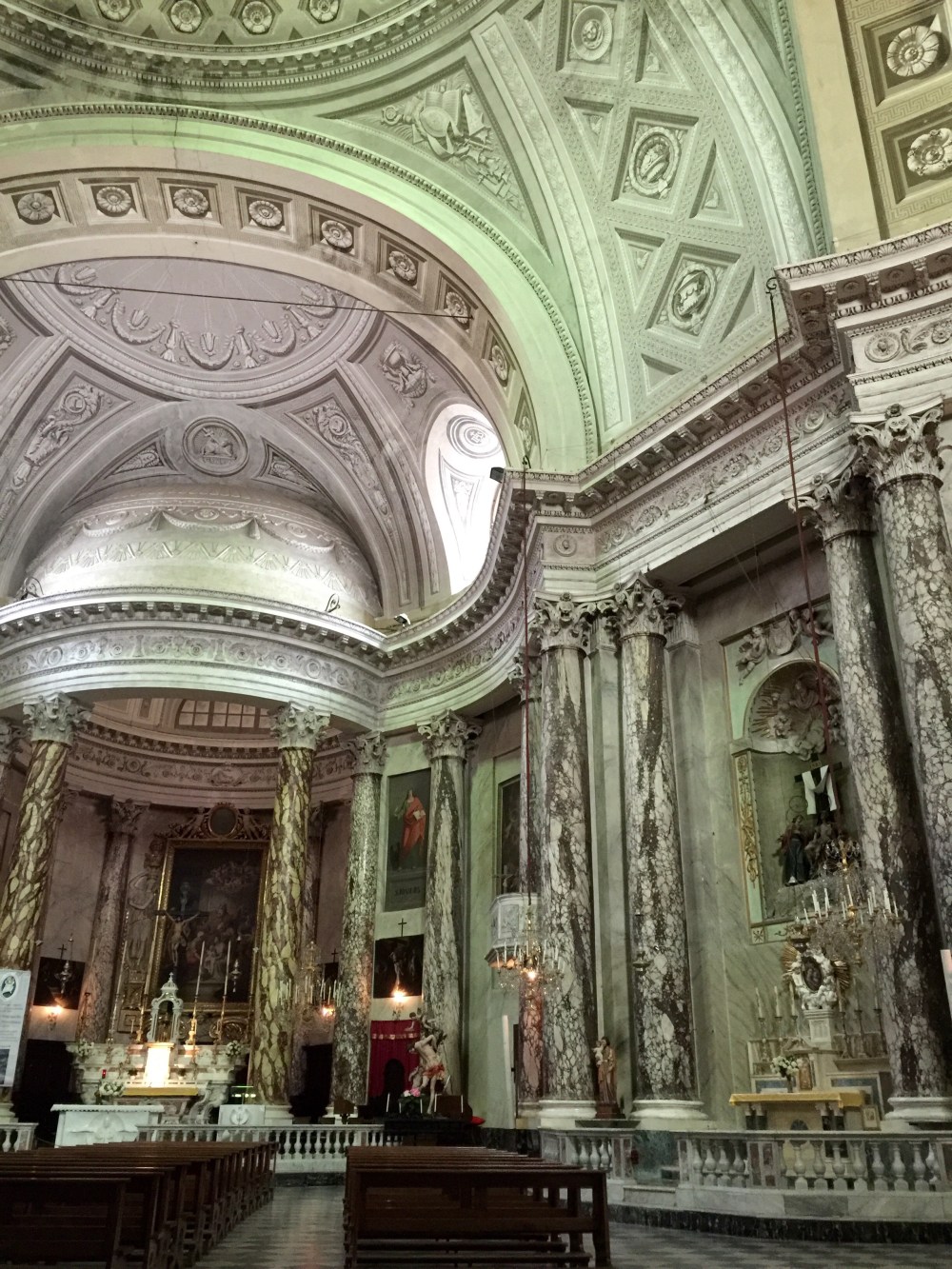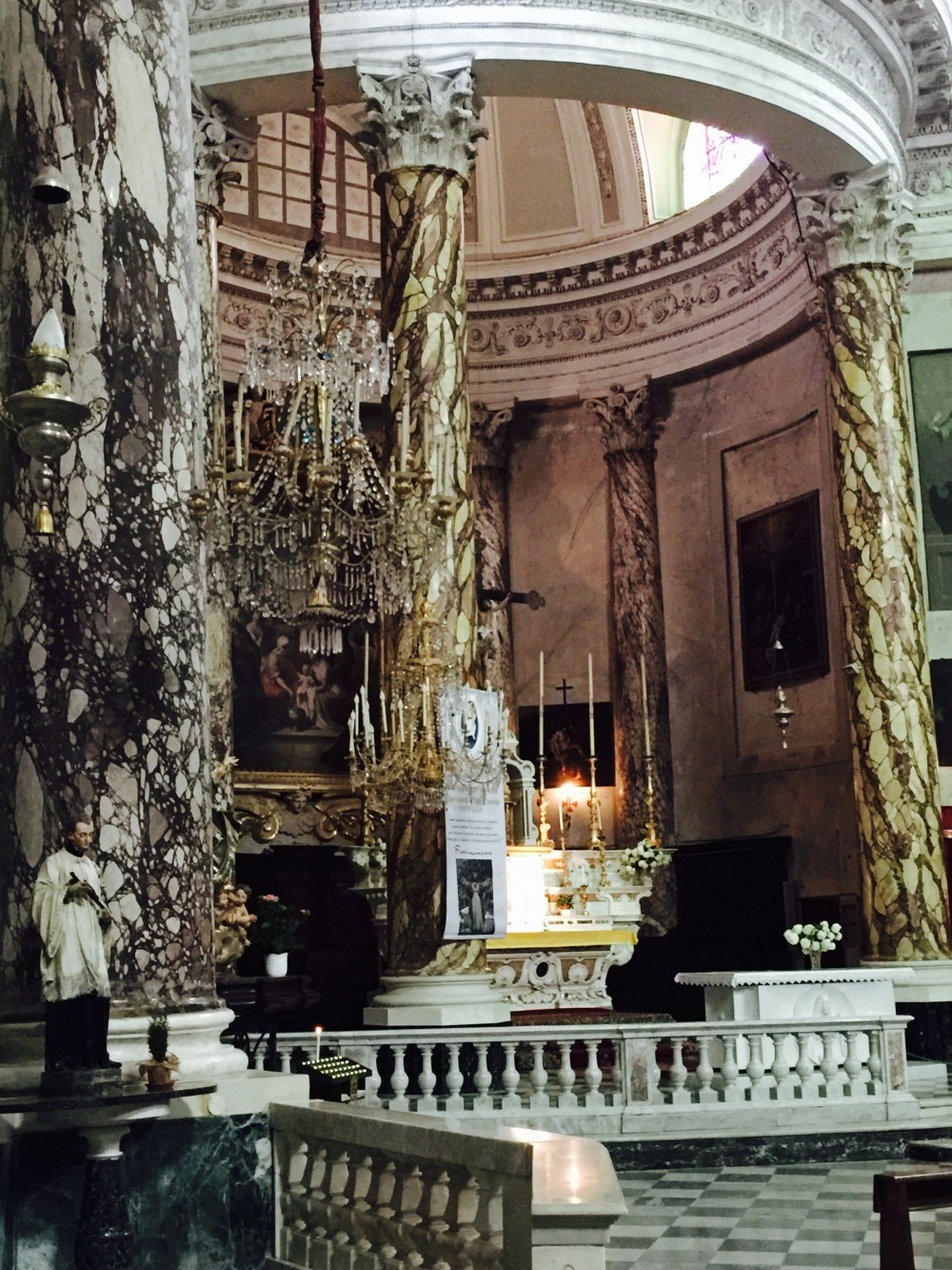 In 185 the church was compleaty knocked down which wasn’t very much appreciated by the people but necessary because it was destroyed but as we can see it was rebuilt. The church has famous sculptures and art works (Giulio Benso).