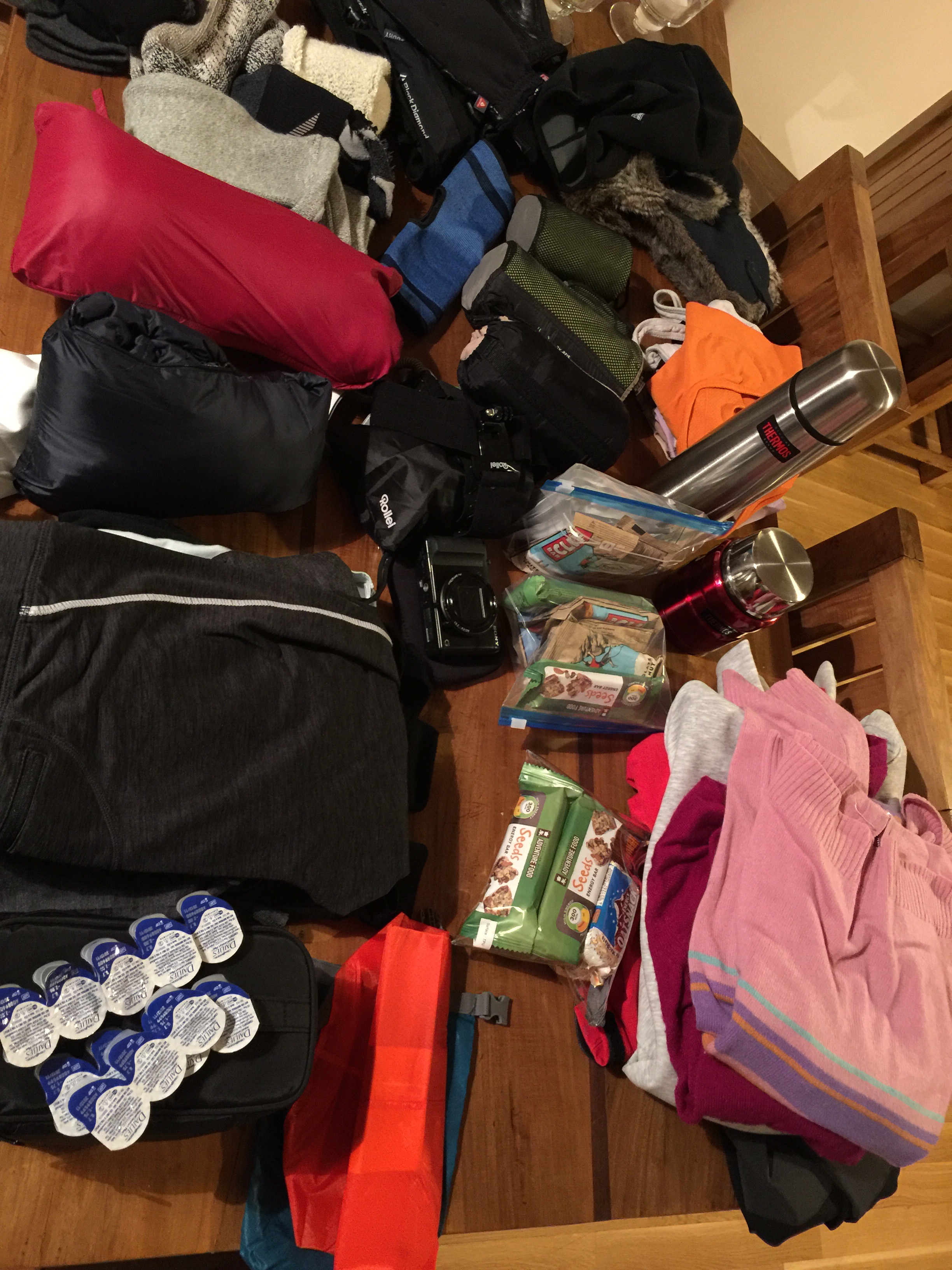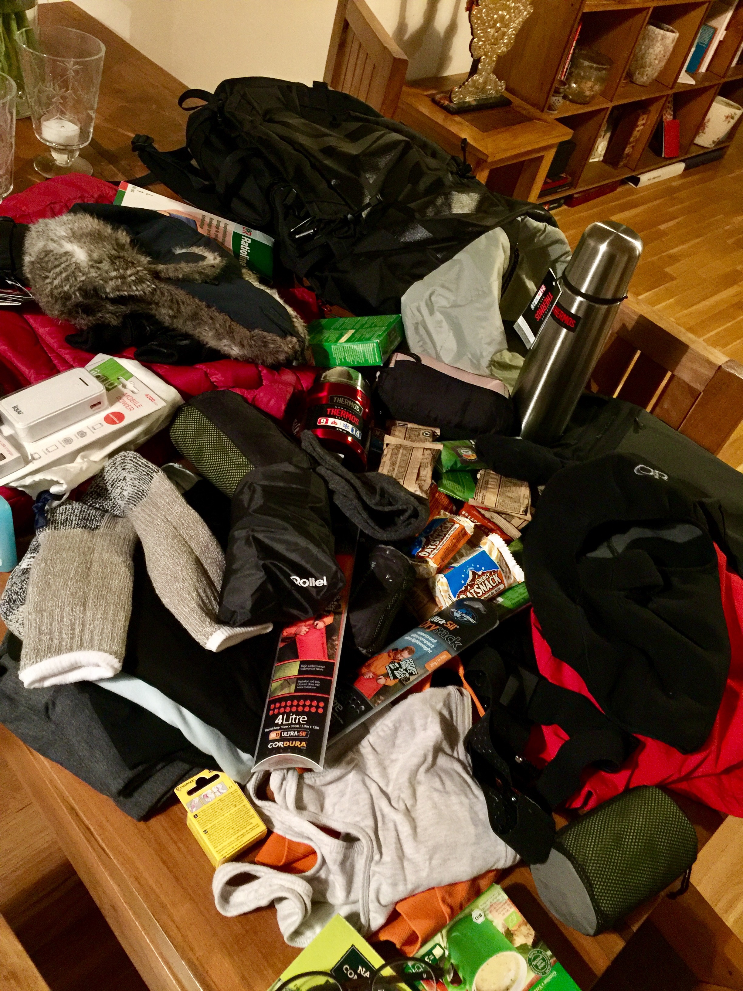 Anyway I almost managed to stick with the 8kg for the bag pack we are allowed to take: Warm storm head, face/nose cover, sun glasses, 3 pair of gloves, various socks, sky underwear, leggings, jackets, 15 müsli bars (? they alone are already heavy), scarf, rich cream for the face, wet towns, 2 thermos jugs: one small one for soup (was the idea travel shop) and 1 later for me to drink during the day, contact lenses, headlamp, and yes: I got myself a new little toy. Currently charging her, will have to read instruction in the plane tomorrow.